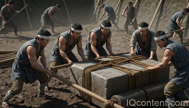 08:00 出仕・普請(ふしん): 本業の時間です。平和な時期の足軽は「国家公務員」兼「土木作業員」でもありました。城の堀を深く掘り、巨大な石垣を運び上げる。現代のジムでのトレーニングなど比較にならないほどの過酷な肉体労働が、彼らの基礎体力を磨きました。