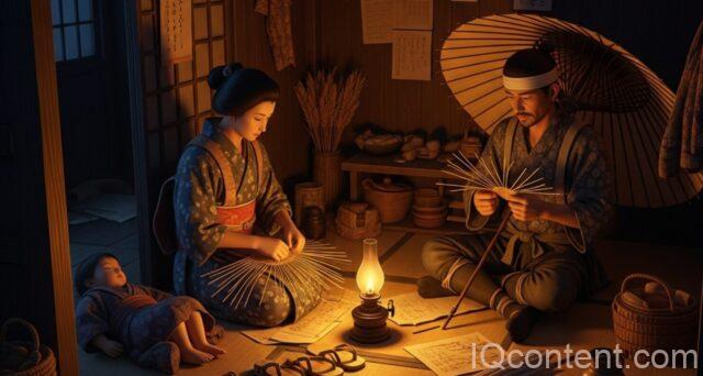 17:00 帰宅・内職: 業務終了。しかし、安らぎの時間はまだ先です。足軽の年収は現代換算で約100~200万円程度。ここから武具の維持費(自前の場合もある)や生活費を引くと、家族を養うには到底足りません。夜更けまで家族総出で「わらじ編み」や「傘作り」などの内職に励みました。