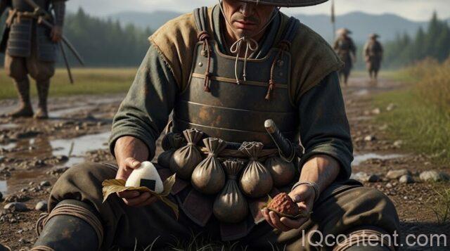 腰兵糧(こしびょうろう): 腰に付けた兵糧袋が彼らの生命線です。朝食は一合の握り飯と、干し味噌を練り込んだ味噌玉。一日の摂取カロリーは約1000~1500kcal程度しかなく、現代の成人男性が必要とするエネルギーの半分以下です。この飢餓状態で行軍を続けなければなりません。